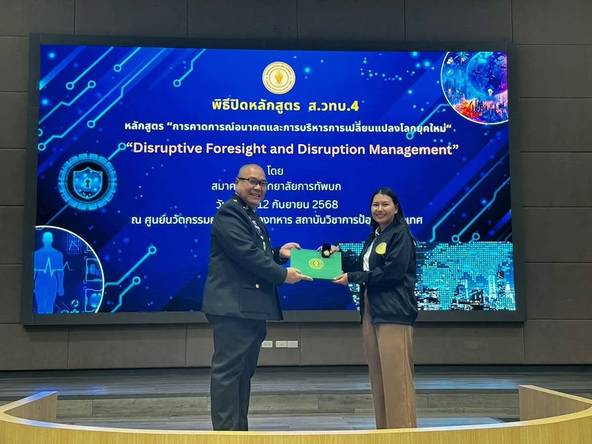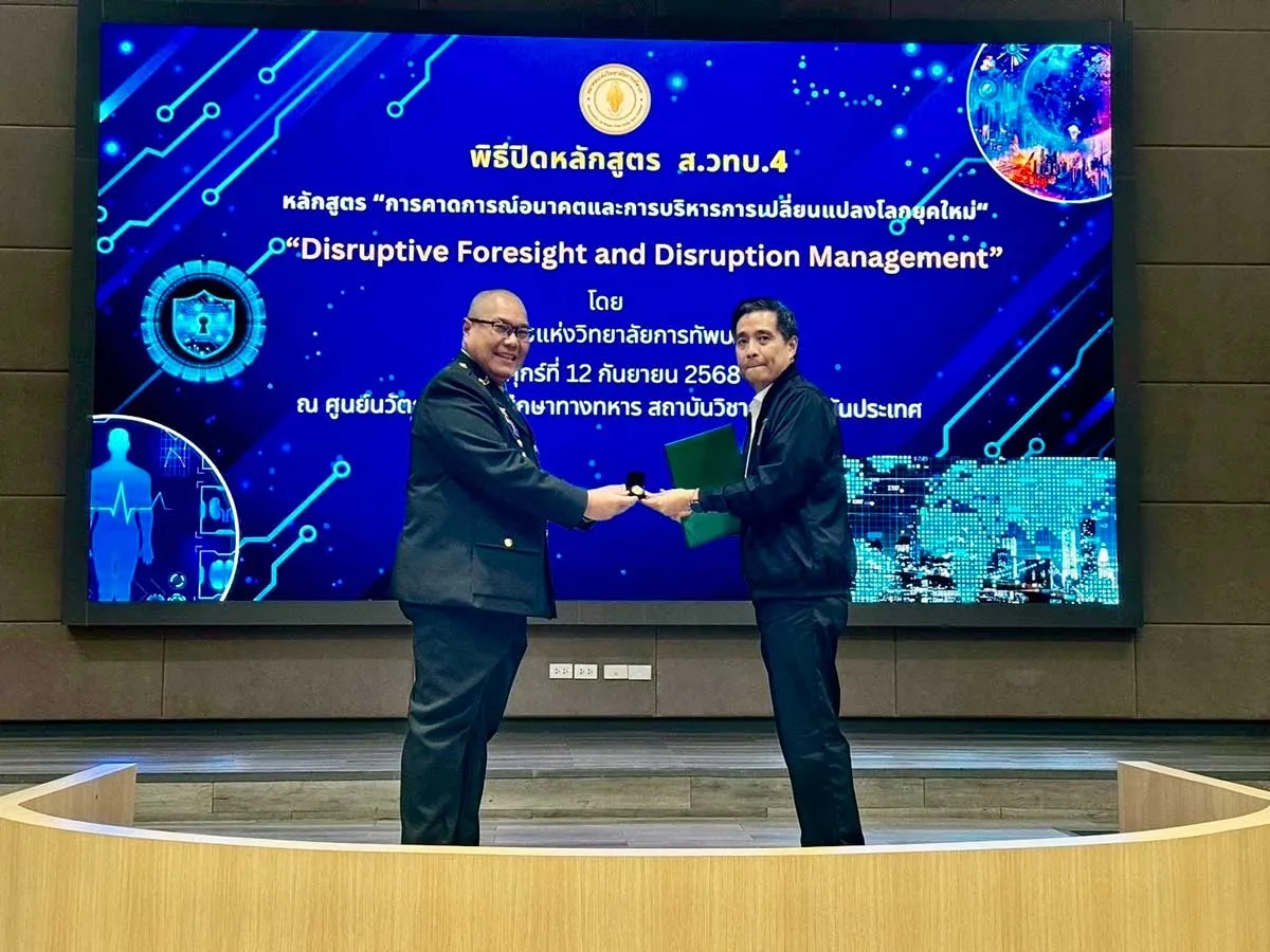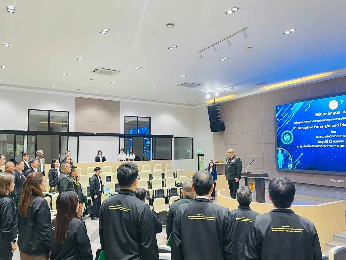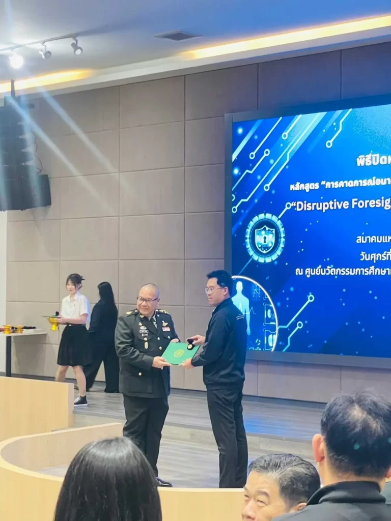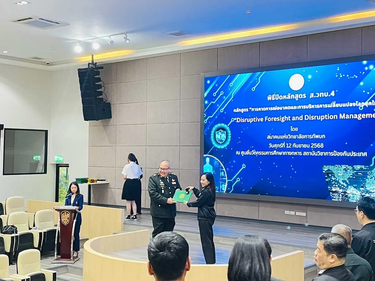 สมาคมแห่งวิทยาลัยการทัพบก จัดพิธีปิดการอบรมหลักสูตร “ การคาดการณ์อนาคตและการบริหารการเปลี่ยนแปลงโลกยุคใหม่” ส.วทบ.4 (Disruptive Foresight and Disruption Management) ซึ่งได้มีการจัดอบรมทั้งสิ้นเป็นระยะเวลา 3 เดือน ในรูปแบบบรรยาย/เสวนา/Panel Discussion และ Workshop ตลอดจนการศึกษาดูงานทั้งในและต่างประเทศ โดยมีผู้เข้าร่วมอบรมทั้งสิ้น 29 ท่าน จากภาครัฐ ภาคเอกชน สถาบันการศึกษา โดยหลักสูตรได้มีการออกแบบมาเพื่อบ่มเพาะผู้นำรุ่นใหม่ที่สามารถปรับตัว รับมือ และสร้างโอกาสท่ามกลางความเปลี่ยนแปลงที่เกิดขึ้นอย่างรวดเร็วและต่อเนื่อง