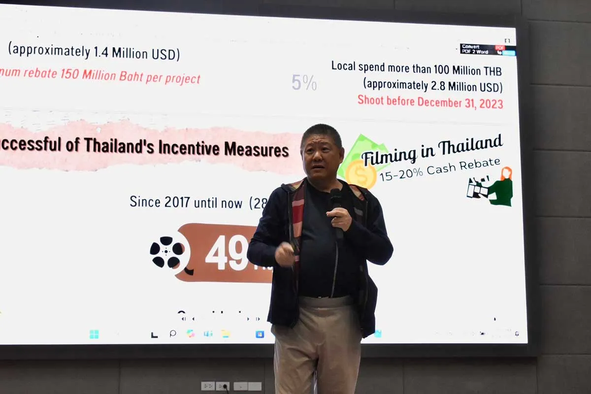 “Soft Power อำนาจแห่งความสร้างสรรค์เพื่อสรรค์สร้างเศรษฐกิจไทย” คุณศิริศักดิ์ คชพัชรินทร์ รองประธานสมาพันธ์สมาคมภาพยนต์แห่งชาติ และ คุณภัสสร ภวภูตานนท์ ณ มหาสารคาม กรรมการผู้จัดการ บริษท เซนส์ อินโฟ เทค จำกัด เป็นผู้ดำเนินรายการ ![]()